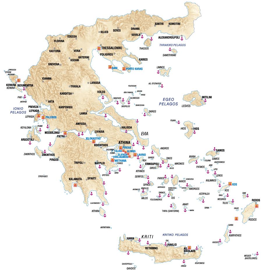 希腊港口的地图。 希腊港口的地图(南部欧洲-欧洲)进行打印。 希腊港口的地图(南部欧洲-欧洲)下载。